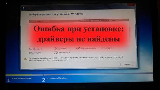 Ошибка: Драйверы не найдены. Чтобы загрузить драйвер запоминающего устройства для установки нажмите кнопку "загрузить драйвер"