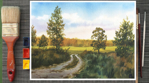 Как рисовать пейзаж акварелью. Уроки рисования. В этом видеоуроке рисуем акварелью пейзаж. Поэтапное рисование.
