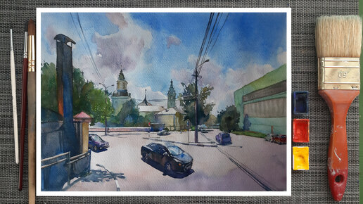 Как рисовать акварелью. Уроки рисования. Городской пейзаж. В этом видеоуроке пишем пошагово этюд акварелью.