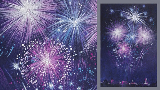 Как рисовать салют. Уроки рисования. В этом видеоуроке поэтапно пишем салют. Акрил, гуашь.