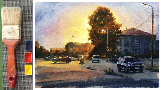 Как рисовать пейзаж акварелью. Уроки рисования. В этом видеоуроке рисуем акварелью вечерний пейзаж. Акварель для начинающих.