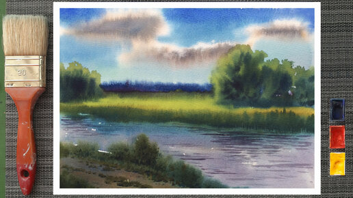 Как рисовать пейзаж акварелью. Уроки рисования. Поэтапное рисование. Акварель для начинающих. Полный урок.