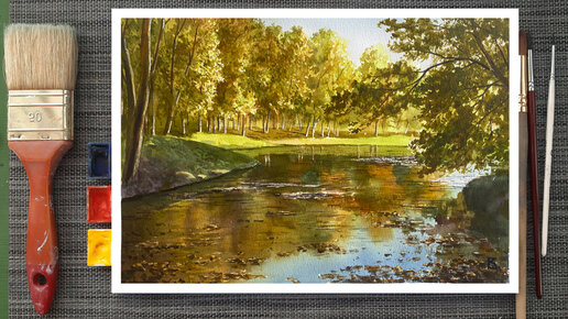Как рисовать пейзаж акварелью. Уроки рисования. В этом видеоуроке рисуем акварелью пейзаж. Акварель. Поэтапное рисование.