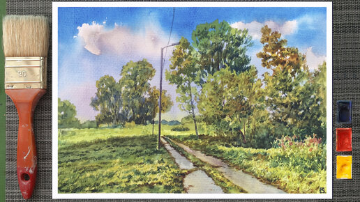 Как рисовать пейзаж акварелью. Уроки рисования. Поэтапное рисование. Акварель для начинающих. Урок с минимальным ускорением.