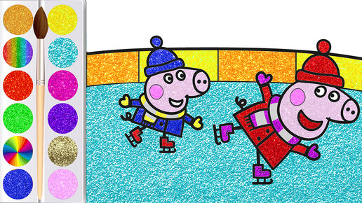 Раскраски с блестками - Сюрприз для Свинки Пеппы прогулка на каток - Раскраска для Детей