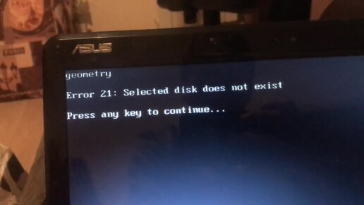 Ошибка Geometry error 21 selected disk does not exist при включении