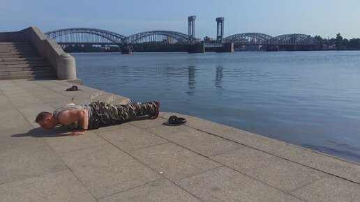 Утро-Отжимание на набережной Невы.