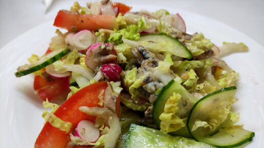 Для любитеьей рыбки, свежий летний салатик с анчоусами.