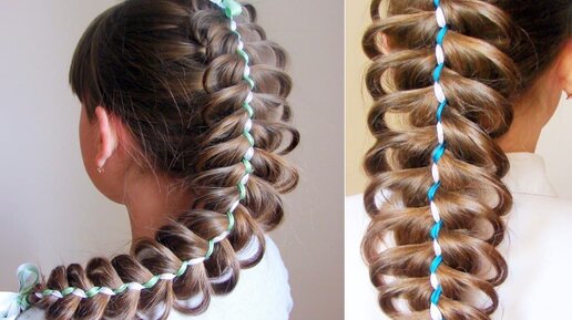 Как заплести ажурную косу из пяти прядей с лентами