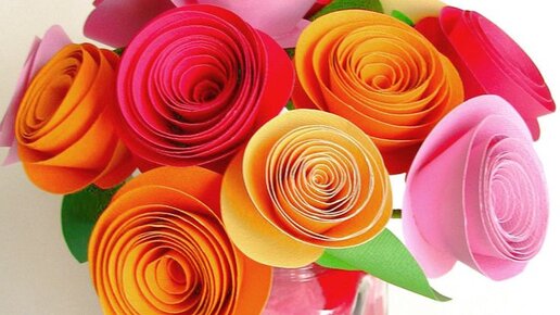 Бумажные розы легко и очень быстро за 5 минут своими руками из цветной бумаги