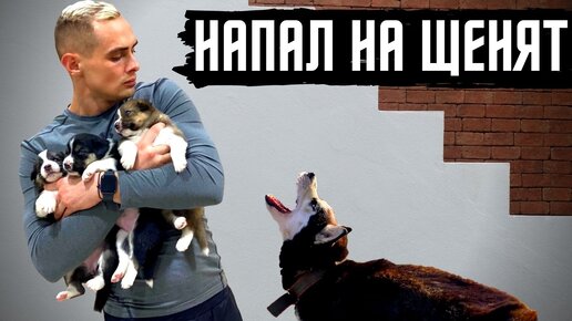 Щенки впервые видят своего отца | Реакция хаски на щенят