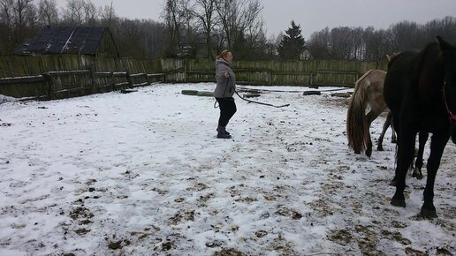 Обучение умной лошади, первый урок на корде