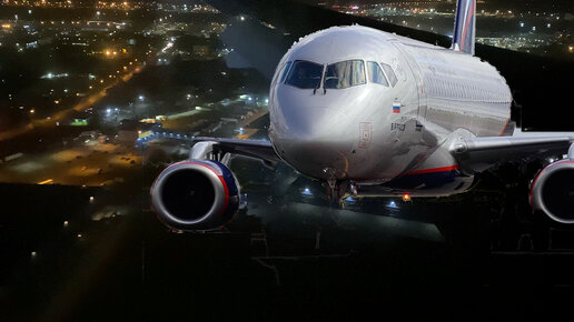 «Аэрофлот», Сухой Суперджет-100, ночной взлёт и посадка из салона