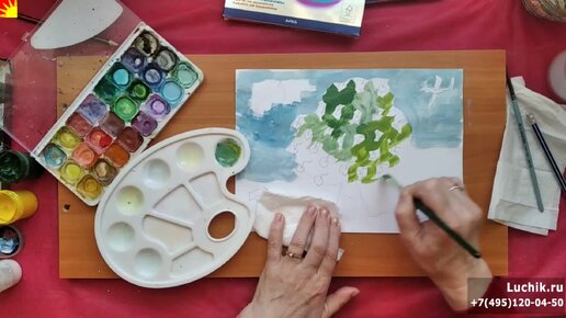 Рисуем «Пейзаж с яблоней» - онлайн урок живописи в школе «Лучик»