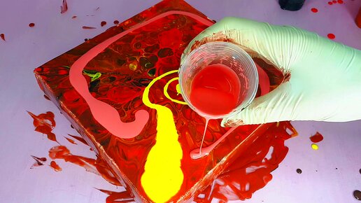 Яркая оранжевая абстракция в технике Флюид