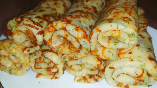 СЫРНЫЕ БЛИНЧИКИ С ЗЕЛЕНЬЮ на завтрак! Съедаются мгновенно!
