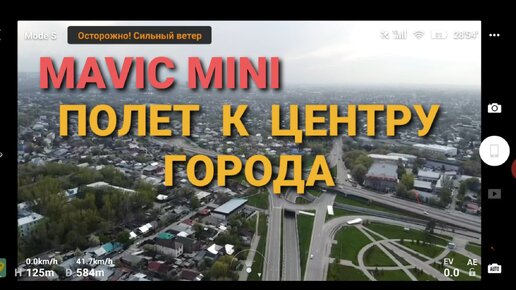Мавик мини. Полет к центру горада при встречном ветре.