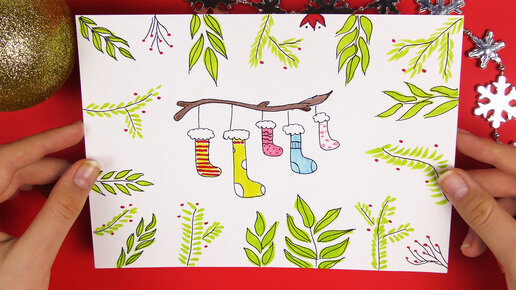 НОВОГОДНЯЯ ОТКРЫТКА своими руками. Открытка на Рождество. Как сделать новогоднюю открытку. How To Draw Christmas Card DIY