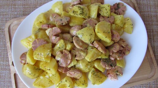 КАРТОШКА С СОСИСКАМИ В СЛИВКАХ