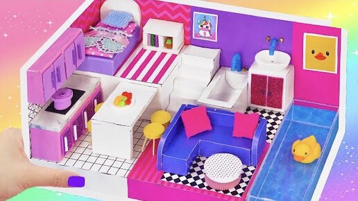 DIY Миниатюрный Домик Из Картона с бассейном | Cardboard House | Как сделать Домик своими руками