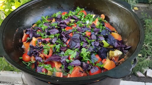 Чанахи по-грузински в казане с томатным соком