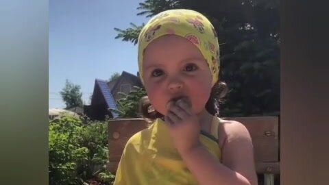 Милота пробует, продукты без ГМО в деревне. Вспомнил прослезился.
