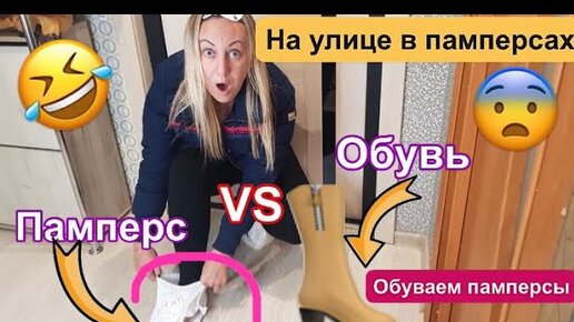 Памперс вместо обуви. В памперсе гуляем. Эксперимент ппч промокнут ноги или нет.