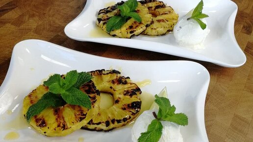 Десерт из ананаса на гриле