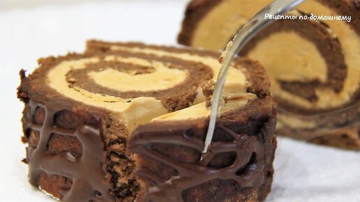 Шоколадный рулет с кремом из вареной сгущенки. Простой рецепт быстрого Шоколадного рулета.