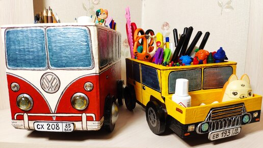 DIY органайзеры в технике картонаж 🚍 микроавтобус и внедорожник 😍
