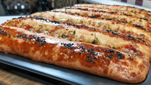 Перемешала тесто ложкой и сразу на противень: как я пеку пирог "в полосочку" без замеса руками (рецепт с мясом)