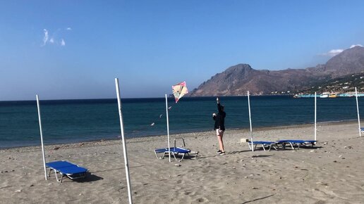 Запускаем змея на пляже южного побережья Крита Плакиас