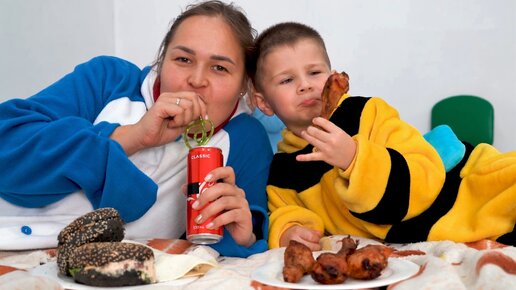 Мама объедается и Булат заставляет ее делать зарядку