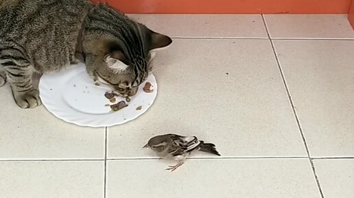 Код прикармливает воробья