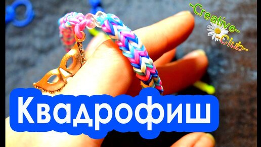 Браслет из резинок на четырех столбиках КВАДРОФИШ / Rainbow Loom