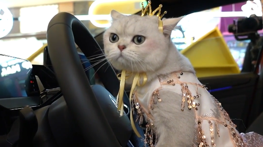 Эта кошечка — настоящая модель! Она украшает собой автомобили на выставке