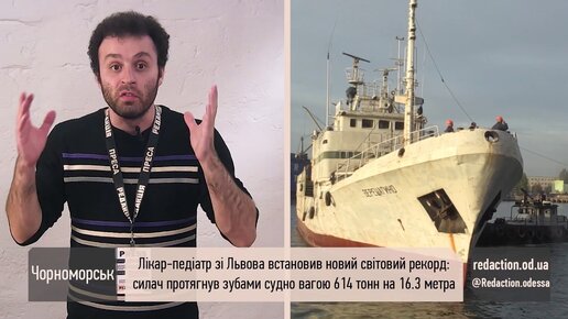 Світовий рекорд: лікар-педіатр зі Львова протягнув зубами в Чорноморську судно вагою 614 тонн