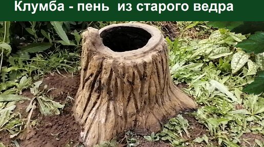 Клумба - пень из старого ведра и цемента. Декор для сада своими руками