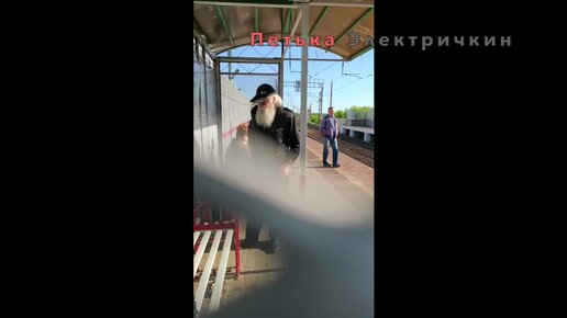 Чудной, бородатый гармонист, разогрев перед выступлением в электричке