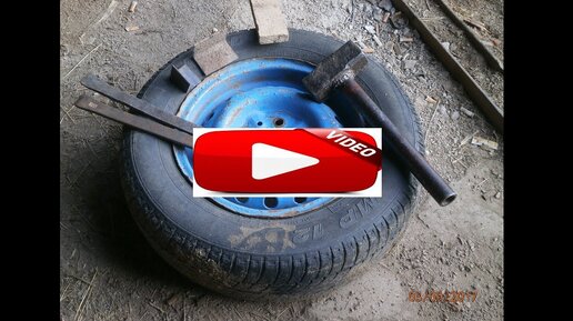 бортирование колеса с помощью монтировки, кувалды, уголка и какой то матери