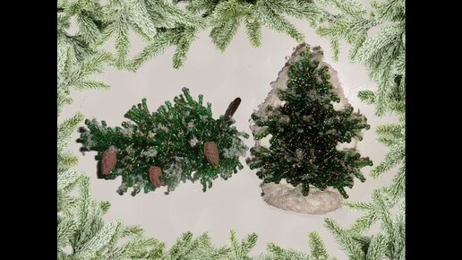Сувенир-магнит своими руками. Часть 7/7. // Елочка из бисера. // Еловая ветка из бисера.