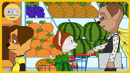Барбоскины игра Супермаркет - Папа, Дружок и Малыш делают покупки в магазине по заданию Мамы