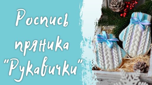 Пряник в новогоднем стиле - как расписать пряник айсингом в виде Рукавиц - простая техника росписи