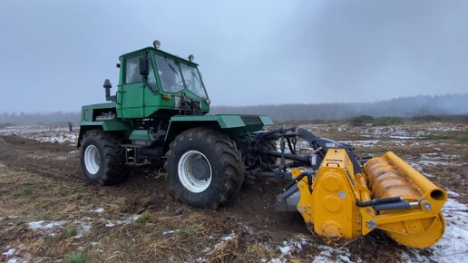 Старичок Т-150 с финским ротоватором MERICRUSHER MJS-241STG на восстановлении залежных земель