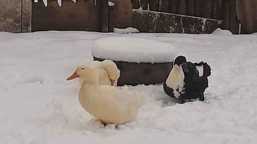 Как переносят сильные морозы индоутки,утки и другие домашние птицы.