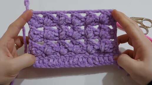 Красивый и простой узор для пледа из плюшевой пряжи крючком