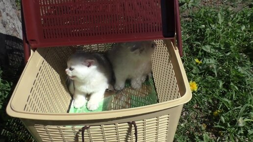 Шотландские котята в корзинке ждут своей очереди на фото.