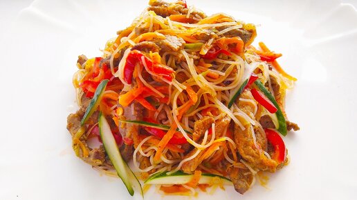 Этот Салат Просто Бесподобен.Острая Фунчоза с Мясом и Овощами.