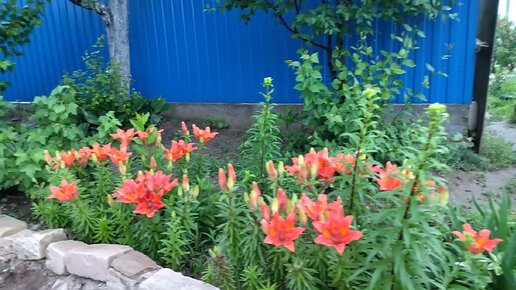 Лилии зацвели в палисаднике