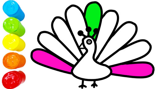 Как нарисовать Павлина. Мультик раскраска для детей. Учимся рисовать простые рисунки для детей.